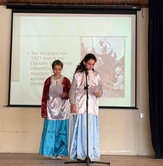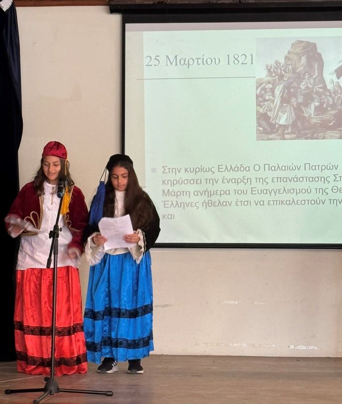 Οι μαθητές των Ε τάξεων τίμησαν και γιόρτασαν την εορτή του Ευαγγελισμού της Θεοτόκου και τον ξεσηκωμό των υπόδουλων Ελλήνων κατά του Τούρκου δυνάστη για ελευθερία και αυτοδιάθεση με μια υπέροχη γιορτή.