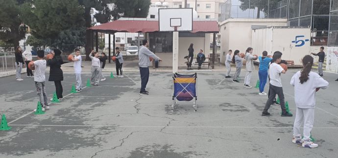 Προπονητές και παίκτες από την ομάδα ΑΠΟΠ επισκέφτηκαν το σχολείο μας για να διδάξουν στα παιδιά το άθλημα της καλαθοσφαίρισης.