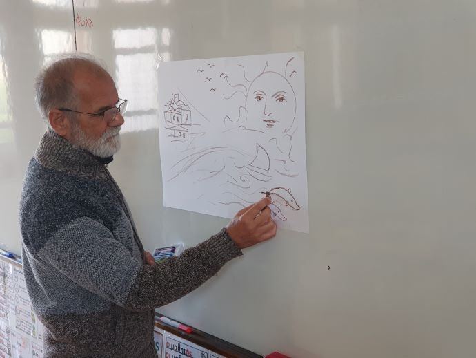 Ο κύριος Χαράλαμπος Επαμεινώνδας επισκέφτηκε σήμερα το σχολείο μας για να διδάξει στα παιδιά πώς γίνεται η συγγραφή και η εικονογράφηση των παραμυθιών. Μας εξήγησε τα βήματα που γίνονται για να φτάσει ένα παραμύθι από τον συγγραφέα στα χέρια μας. Μας αποκάλυψε και τα σπουδαιότερα μυστικά για τη δημιουργία ενός παραμυθιού. Και φυσικά αυτά δεν είναι άλλα από την αγάπη για τα παραμύθια και την μπόλικη φαντασία. Τα παιδιά ενθουσιάστηκαν τόσο από την προσωπικότητά του όσο και με τα έργα του. Στη συνέχεια προσπάθησαν να γίνουν και αυτά μικροί δημιουργοί...